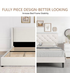 - Premium Velvet Fabric-Covering the entire upholstered beige bed frame with selected high-quality corduroy, it is super soft and cozy. It is colorfast and stain resistant especially compared to regular fabrics